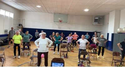 The class is 50-minutes in length, beginning with a warm-up followed by strength and cardio components. Everything can be done seated as chairs are set up for all participants, regardless of their level. Beginners will feel comfortable working at their own pace and modifications are given for those of you ready to work a bit harder. There is no floor-work included in this format.